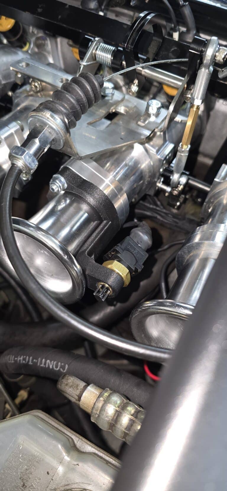 To support the new engine management setup, we designed a bespoke IAT sensor bracket mounted directly to the ITBs, ensuring precise air temperature readings. A custom ECU mount was also produced, allowing the unit to be neatly integrated under the dashboard in the factory location.